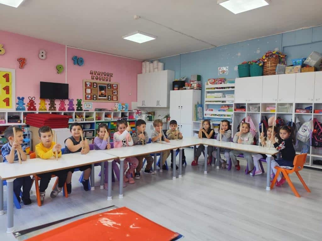 Çeşitli ritim araçları kullanılarak yapılan çalışmalarla öğrencilerin dikkat, koordinasyon ve müziksel farkındalık becerileri desteklenmiştir. Ayrıca öğrencilerin birlikte hareket etme, dinleme ve kendini ifade etme becerileri pekiştirilmiştir.